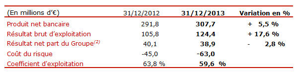Résultats financiers* consolidés de la Banque Palatine au 31/12/2013